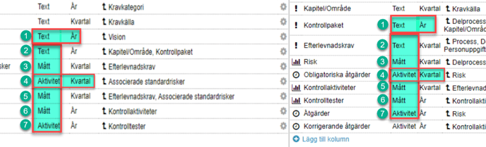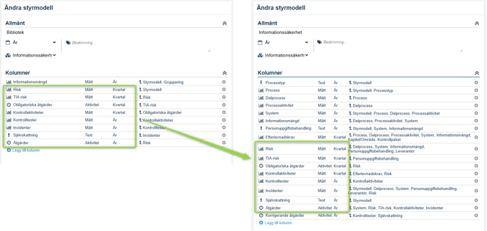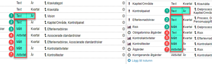 Image Example 1: With this setup, the entire chain will be included when choosing to include linked objects, from Risk to Actions, as the entire chain of columns matches. There does not need to be objects in all columns – if there are only Risks and Indicators, for example, they will still end up in the correct columns in the receiving database.