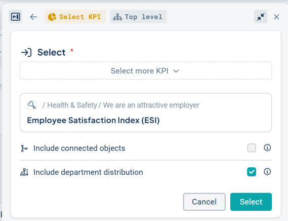 Choose whether to include linked objects and whether department distribution should follow for the selected objects, then choose Select or Copy. Any potential distribution to sub-departments will not be included when copying, so you will need to manually allocate your copied objects afterward.