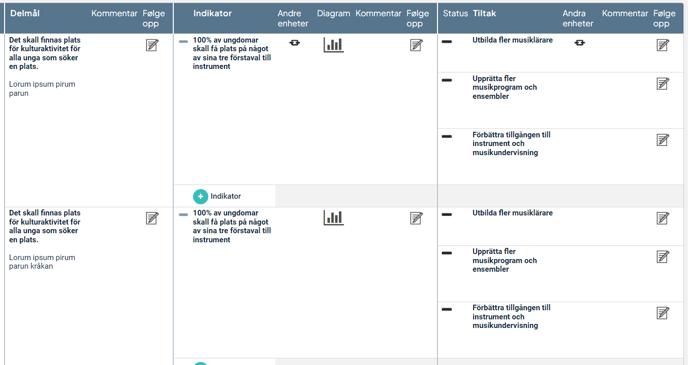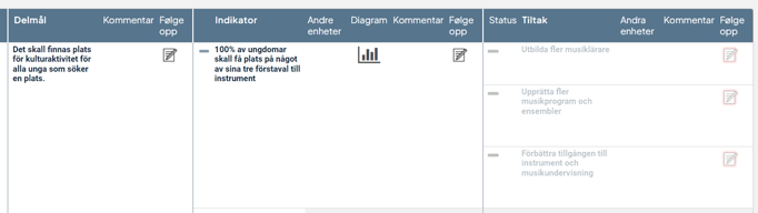 In the example below, one indicator and three activities were included. In the new scorecard, a keyword is required – therefore, the activities are greyed out, as they lack mandatory information in the new scorecard. In this case, go into each activity and complete the missing information.