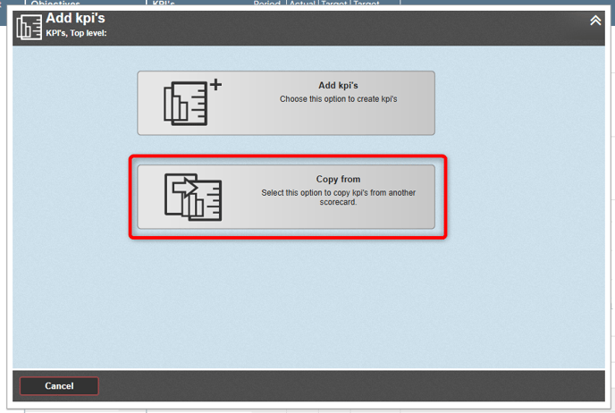 The setup is done partly in the scorecard column, where you need to allow other scorecards to select from the column, and partly in the view where you want to be able to select or copy in objects.