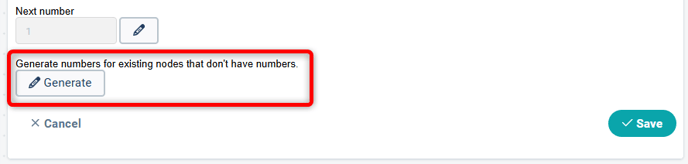 Return to the number series administration. The selected scorecard column will now appear linked to your number series. Click the pencil icon for the series you wish to use to generate numbers for existing objects/nodes: