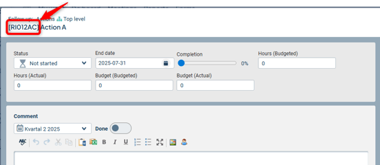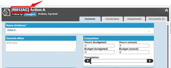 The serial number does not appear as a separate property in the edit or follow-up windows. Instead, it is displayed in front of the name in these windows. In the images below, the serial number [RI012AC] is shown, followed by the name of the node/object.