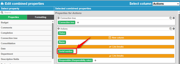 In views and report sections, the serial number is displayed using the node property Serial number.