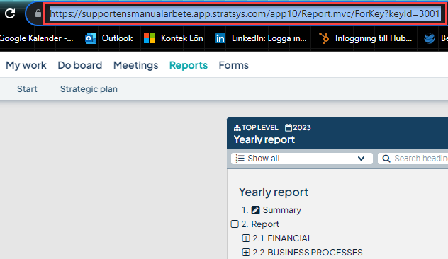 - Attach supporting material by linking web pages, pages within Stratsys, e.g. reports and views, using a link - see section below