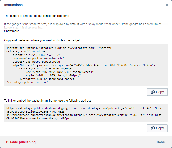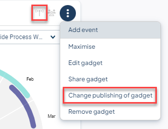 The radio tower icon indicates that the gadget is published. You can deactivate the publishing at any time and access the information again through "Edit publishing...".