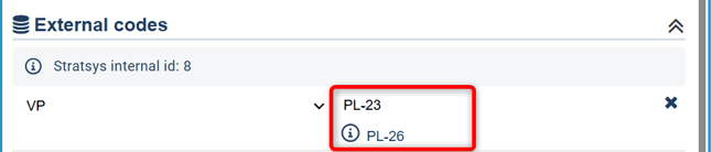 It has for some time been possible to integrate data (such as user permissions or KPI data) to units and KPIs that exist only in the planning version. To ensure the integration functions correctly for these units and KPIs, external codes need to be managed. This section describes how to manage external codes in the planning version.