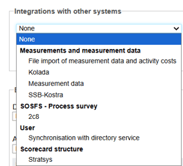 Not all source systems require an integration type. Depending on which source system is used, an integration type may need to be linked to the source system. This is done to enable proper configuration of the integration. For example, the integration "User Synchronization – Synchronization with Directory Service" allows multiple units in Stratsys to be mapped to a single unit in your user directory.