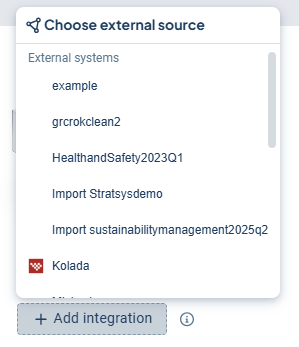 An external source system must exist in Stratsys in order to create an integration with another source system. External codes must be created for a source system to map units, KPIs, and KPI columns in Stratsys with corresponding units, KPIs, and columns in the external source system.