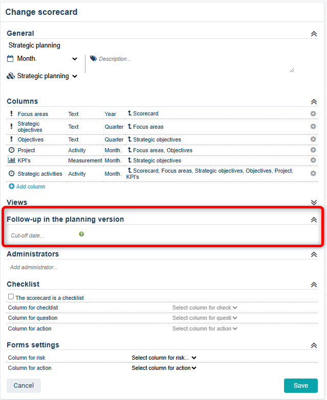 It is possible to configure whether a management model should have its own start date for when the planning should take effect. This currently only affects the to-do list and reminders. It does not affect, for example, which period is considered the first in a view/report section within the planning or other settings based on the planning version's start date.