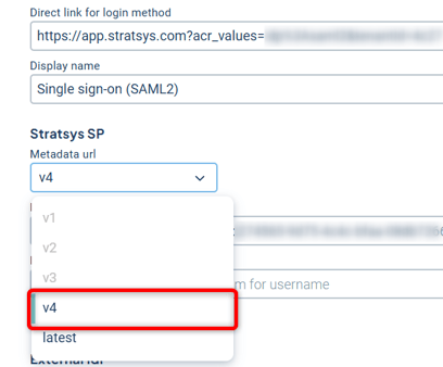 Note: Changing the SSO version affects the Stratsys metadata, which means you must update your Identity Provider (IdP) configuration for SSO to continue functioning with Stratsys.