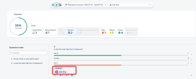 By clicking on the unit that submitted the checklist, the person who answered the question will be displayed. The user who submitted the checklist is not shown.