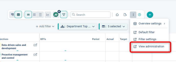To access the settings from the view you are currently in, click the three dots on the right side of the toolbar and select "View Administration":