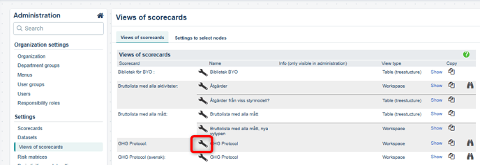 To edit, copy, or add a view from the administration, go to the "Views of Management Models" menu. The views are sorted alphabetically by management model.