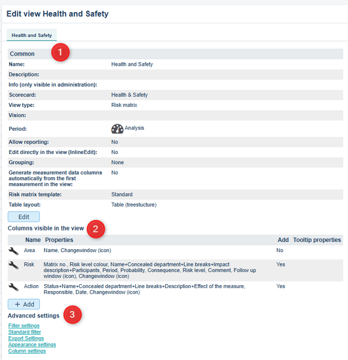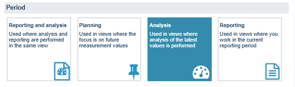 Period determines from which period information is displayed in the view. Show advanced settings to see exactly what is activated for the different options. Also read more in the article Period Settings.