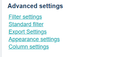 In the advanced settings, you configure Filter Settings and Default Filters – see the linked articles for more information.