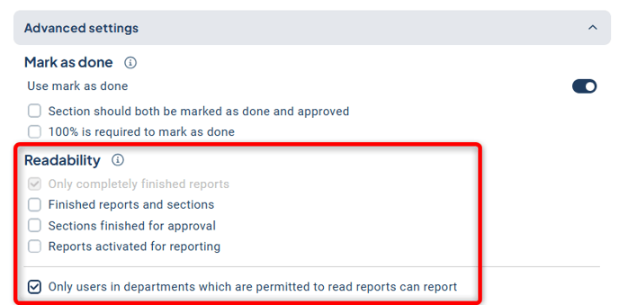 In the report’s settings, you can adjust its readability—that is, what is required for users to be able to read the report.