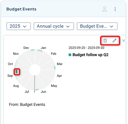 If you have a smaller annual wheel where events are not shown in a list, you need to click on an event directly in the wheel to view more information and access the options to delete or edit the event.Don’t forget to save after making your changes!