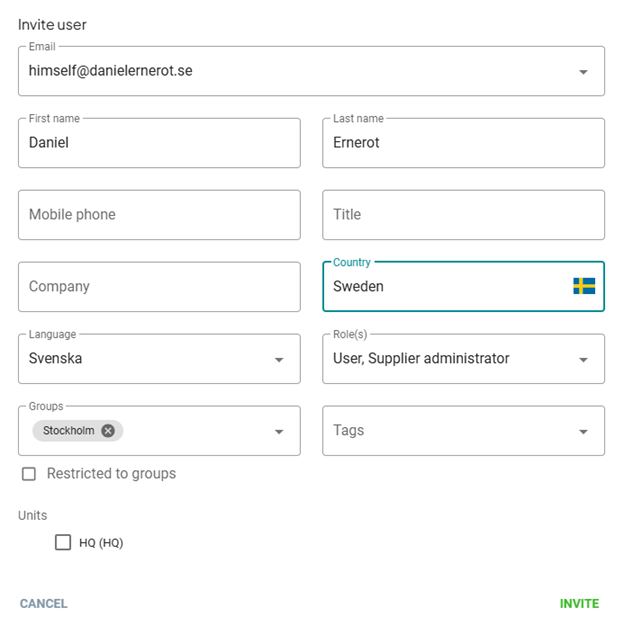 Klicka på Invite för att skicka en inbjudan med vidare instruktioner.