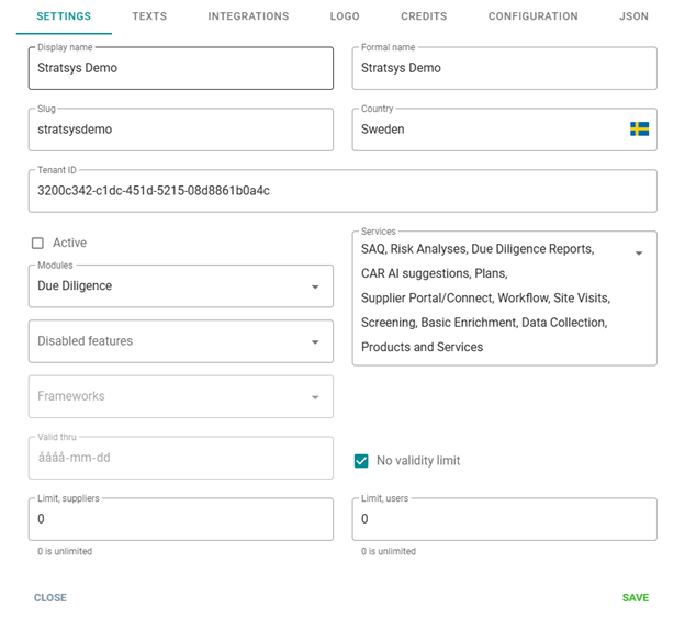 Kundens Tenant-ID i Stratsys (hämtas från Customer Hub). |