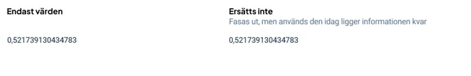 I samband med migreringen kommer vi inte längre stödja utseendet för inställningen ”Endast värden". Det innebär att inställningen inte längre är valbar efter migreringen, om ni inte använt den  sedan tidigare.
