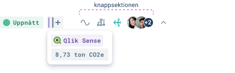 Egenskaper som möjliggör vidare navigation eller visar mer detaljerad information placeras i en särskild knappsektion till höger som i exemplet ovan. Denna sektion anpassar sig inte efter kortets bredd – knapparna är alltid synliga och är direkt klickbara.