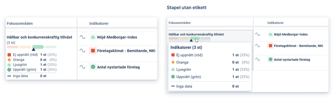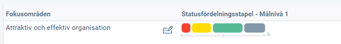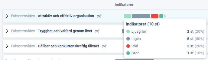 - Begränsningar: Statusfördelningsstapeln tar inte med riskmått eller mått som har färginställningen “ingen färg” - dessa visas inte i statusfördelningen eller dess tooltip.