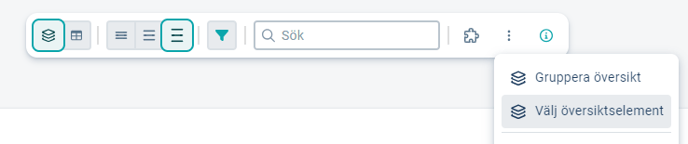 För de grupperingar som finns går det att lägga till översiktselement, som visar status för grupperingen. Välj översiktselement hittar du i trepunktsmenyn längst till höger i verktygsfältet.