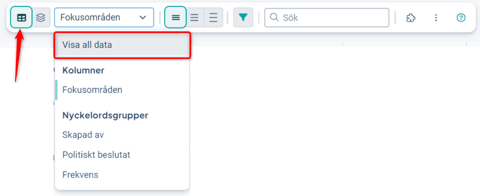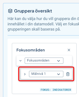 Därefter väljer du den styrmodellskolumn till höger om "Fokusområden" som innehåller "mått" för vilka data ska summeras och som är kopplade till "Fokusområden".
