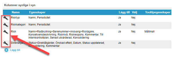 Kolumninställningarna når du via inställningarna för en specifik kolumn: