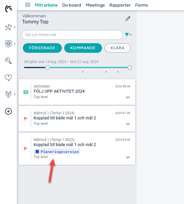 Åtgärder från Meetings och Do-boards kräver ingen administration utan varje användare kommer automatiskt att få upp sina mötesåtgärder i sin lista.
