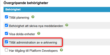 - I administrationen finns en sektion för hantering av e-arkiveringsprocessen för behöriga användare.