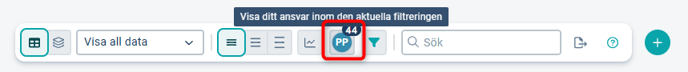 Om du själv är ansvarig för ett eller fler objekt, så kan du visualisera dessa genom att trycka på "Visa ditt ansvar". Knappen hittar du till vänster om filtertratten och den visar antingen din profilbild eller dina initialer.