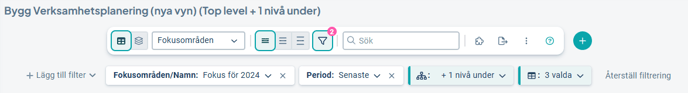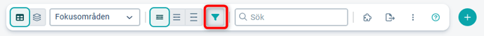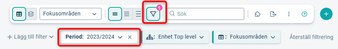 Med hjälp av filtertratten i verktygsfältet går det att göra filtreringar som är generella för hela arbetsytan, exempelvis vilken period som ska visas. Din filtrering sparas genom så kallade "kakor" i webbläsaren, och sparas även om du byter till en annan vy eller rapport. Detta är en skillnad jämfört med de klassiska vytyperna, som återställer ditt filter så fort du laddar om sidan.