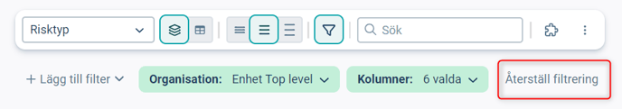 För att visa samtliga objekt igen, klickar du en gång till på "Visa ditt ansvar", eller på "Återställ filtrering". Om du navigerar bort från arbetsytan behöver du aktivera filtret igen när du kommer tillbaka.