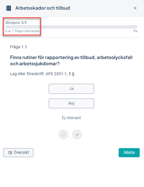 När du genomför en stickprovsgranskning, arbetar du med checklistan som vanligt, men med den viktiga skillnaden att du kommer att genomföra samma checklista flera gånger, en gång för varje stickprov. Läs mer i artikeln Besvara en checklista