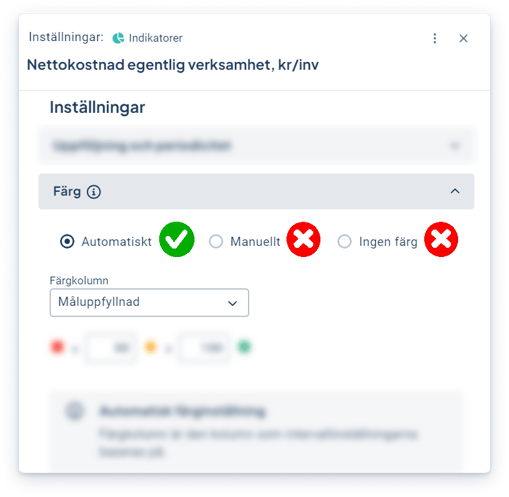 - För att visualisera måttdata behöver du arbeta med mått inställda på "automatisk färg".