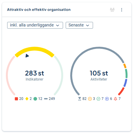 - Under mätaren visas hur många aktiviteter det finns med en viss status för de ingående aktiviteterna.
