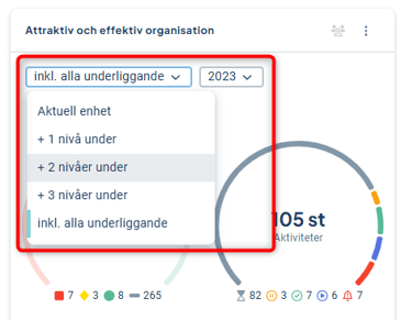 I gadgeten kan du välja hur många underliggande nivåer som skall visas och det går också att visa måttfärger från en annan period. Dessa ändringar är temporära och påverkar bara den enskilda användaren.