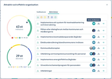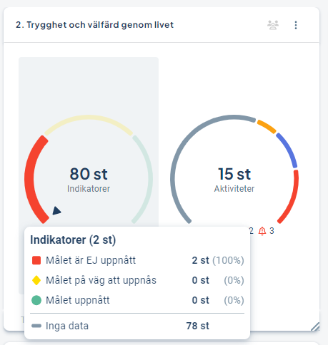 Visa status för mått och aktiviteter direkt på din dashboard för utvalda områden och mål.