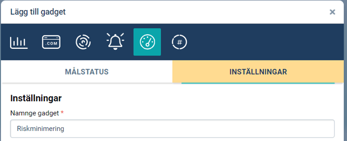 När du sparar gadgeten får den automatiskt samma namn som valt objekt. Under "Inställningar" kan du byta till ett annat namn för gadgeten, innan du sparar: