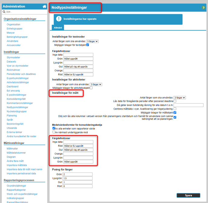 Du ställer in dessa texter i administrationens Nodtypsinställningar:
