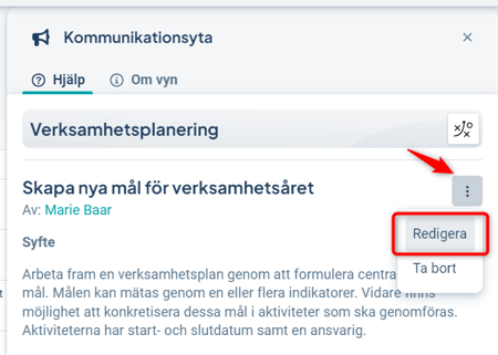 Om du redan har en hjälptext som du vill ändra, klicka istället på kontextmenyn (tre prickar) och sedan på Redigera: