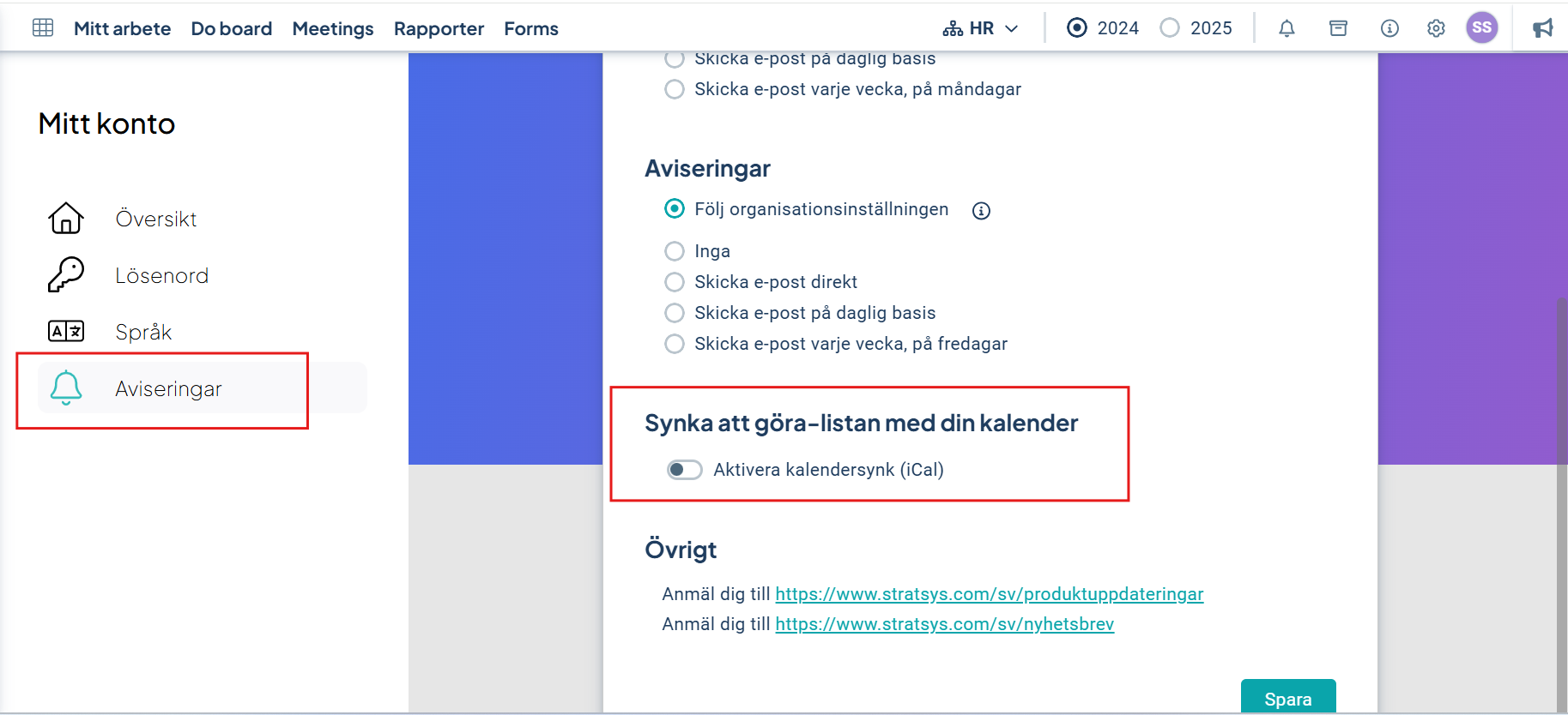 2. Tryck på Aviseringar och slå sedan på Synka att göra-listan med din kalender