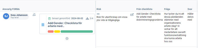 - Eventuell kommentar från just den fråga åtgärden eller risken är skapad ifrån