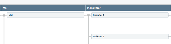 Bildexempel: Både "Indikator 1" och "Indikator 2" är kopplat mot samma Mål.