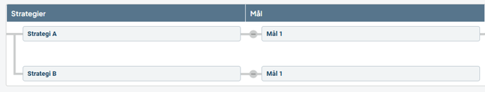 Du kan också koppla ett objekt till flera andra objekt genom att lägga till nya kopplingar, till exempel koppla ett mål mot flera strategier som är tillämpliga för målet. I detta fall visas objektet på samtliga ställen som det är kopplat. Det kan då se då ut som det finns dubbletter av objektet, men det handlar alltså om samma objekt som är kopplat till flera andra objekt.