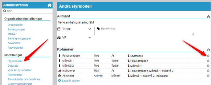 För att komma åt inställningarna, navigera till administrationen. I vänstermenyn klickar du på "Styrmodeller". Klicka på skiftnyckeln för den styrmodell du vill ändra inställningar för.