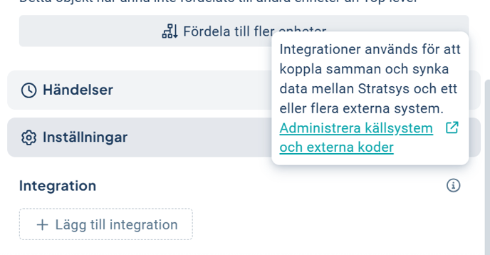 Under inställningar finns möjlighet att lägga till integration utifrån tillgängliga källsystem.