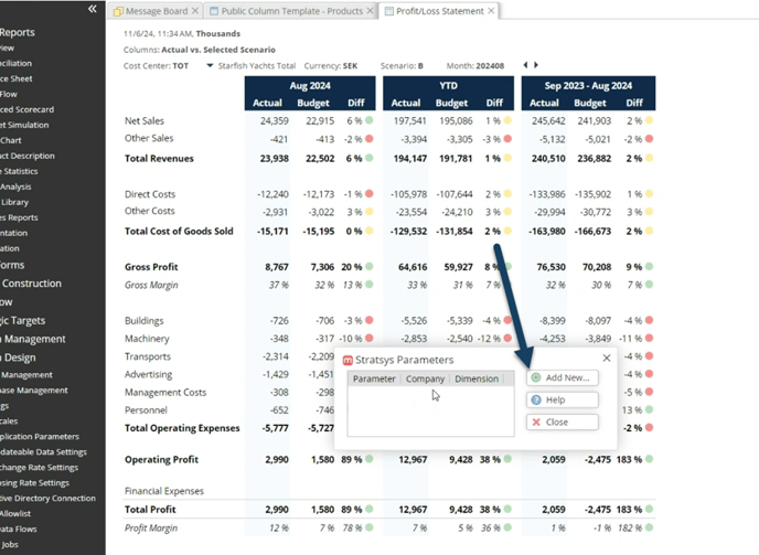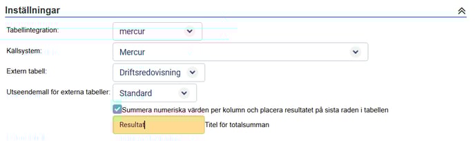 Om ingen summarad finns med i tabellen som hämtas in, kan ni lägga till summering i Stratsys. Viktigt att kontrollera så att ni inte får dubbla summarader!