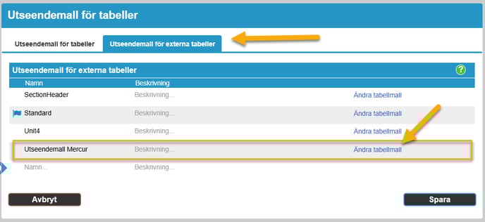 För att lägga till en ny utseendemall gå till Administration > Utseendemall för tabeller och välj fliken Utseendemall för externa tabeller: